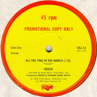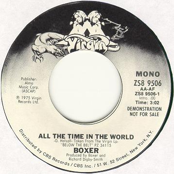 "All The Time In The World"/"Don't Wait" UK single Virgin, Cat. # VS 135. Great non-LP B-side. |