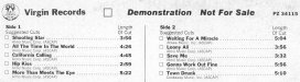 The US promotional LP has a gold "Demonstration Not For Sale" stamp and a Suggested Cuts sticker on the back of the album cover. | ![]() |