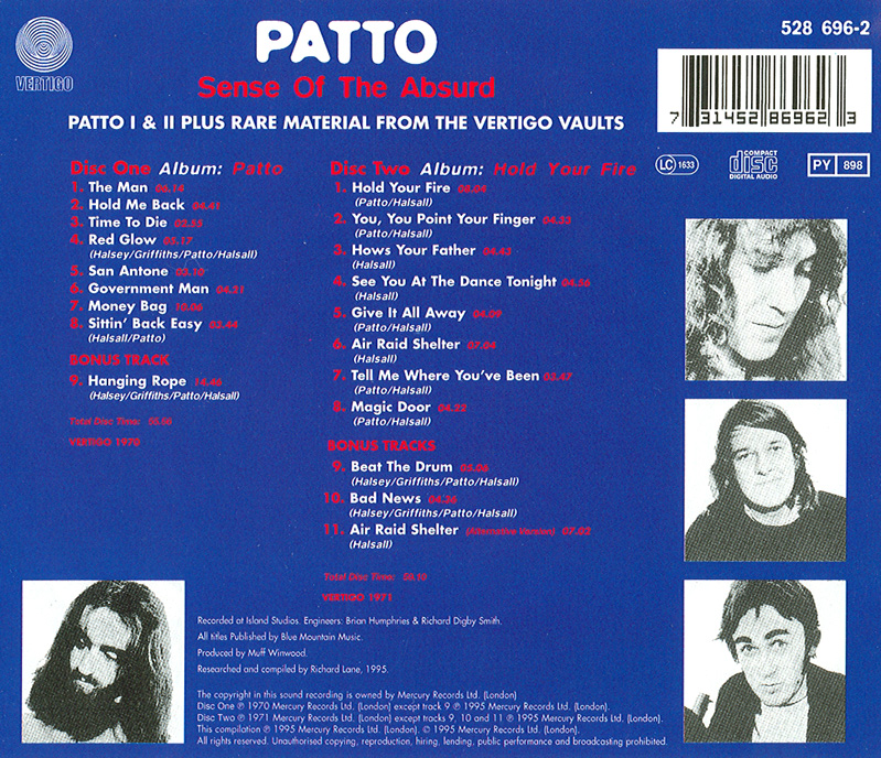 Disc One - "Patto", Vertigo 1970 | Disc Two "Hold Your Fire", Vertigo 1971 |