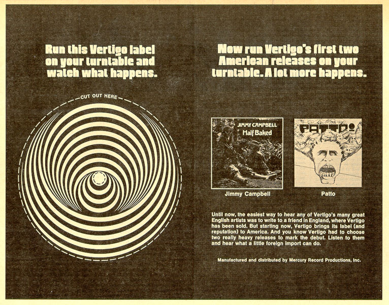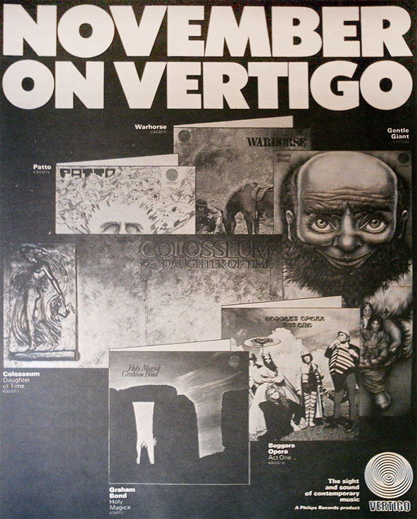 the Vertigo records advertisement for these two albums as it appeared in