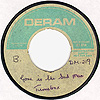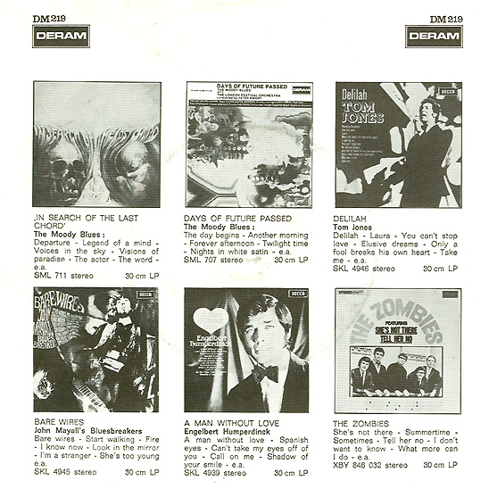 The Belgium promotional single and picture sleeve. Deram DM 46. The picture sleeve was simply a piece of paper folded in half with the same image on both sides. |