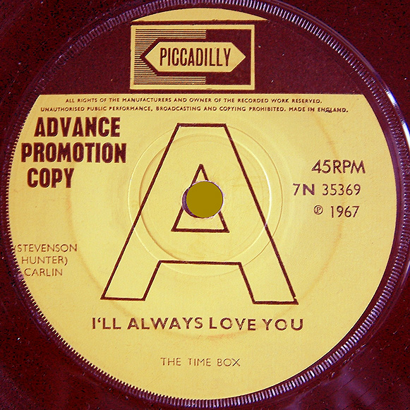 The UK promotional single. Piccadilly 7N 35369. Thanks to David Couldridge for kindly providing the images. |