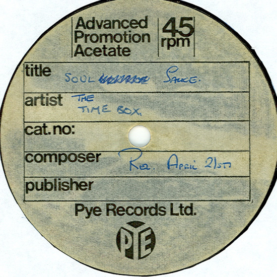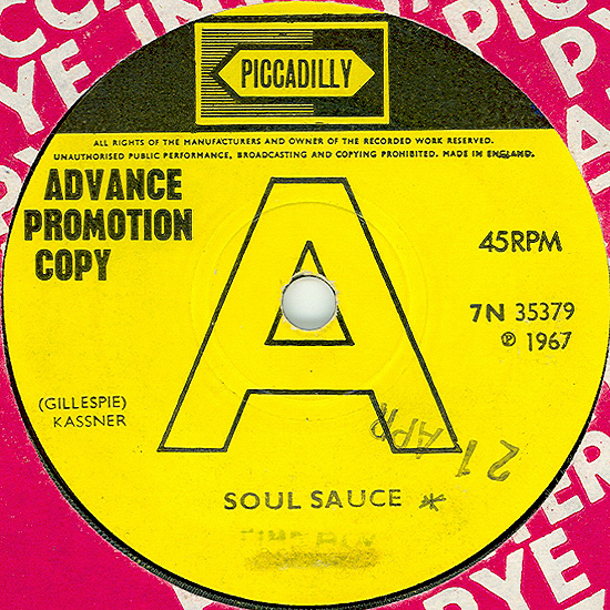 A rare one-sided UK PYE Records acetate for "Soul Sauce". |
