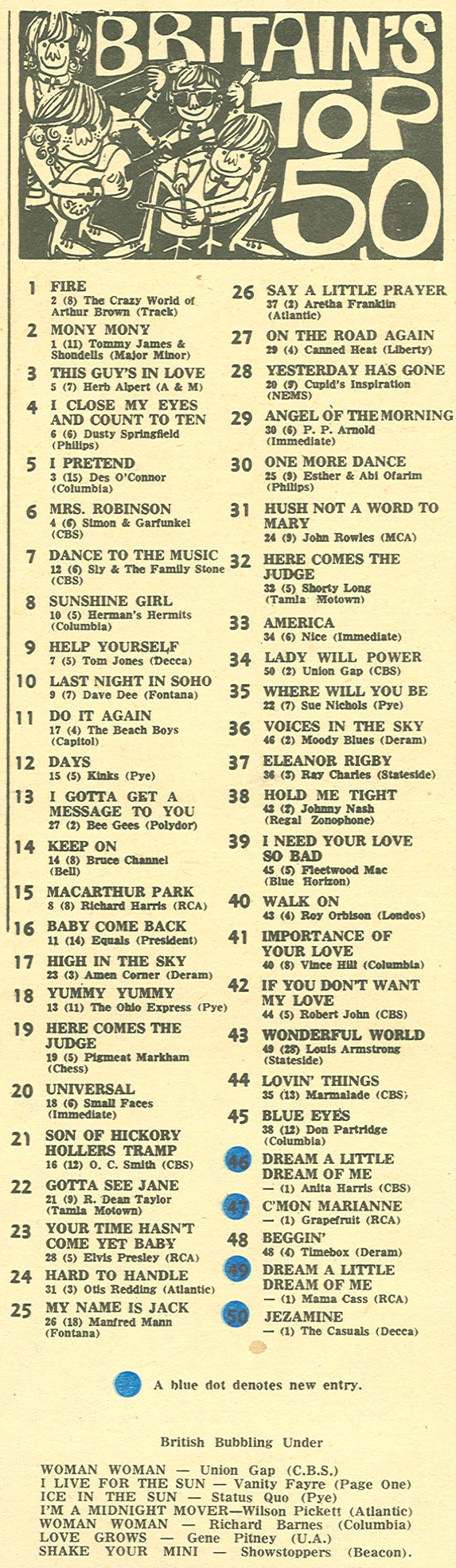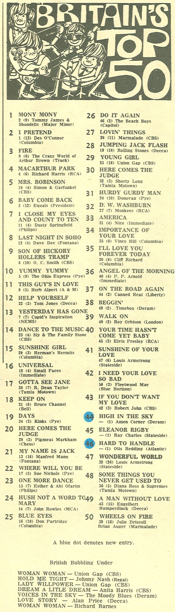 July 27, 1968 - Enters charts at position #49 |