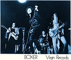 And the offer was to join BOXER It was just an ordinary day in the life of Mike Patto, record biz executive of indeterminate capacity: drinking tea, watering his plants, chasing secretaries around filing cabinets, playing the piano and answering the occasional phone call with the deft wit acquired during years of keeping excitable people at a proper distance. In those days he had been a pop star, of course - an activity so conducive to excess in all its horrific manifestations that somehow he felt secure and dignified in the deep-pile carpeted warmth of his sumptuous repository. Then the door opened. He hadn’t seen Ollie Halsall since the dissolution of that much-acclaimed beat combo Patto some two years before, and he harboured no particular intention of ever seeing him again. But there stood Halsall, looking reckless and dishevelled. Beside him was Tony Newman. Patto had heard about him, and lit a cigarette with urbane precision to camouflage his unease. "What are you up to, boys?" inquired Patto, with cautious familiarity as Newman began to scuff up the Persian rug menacingly. "We’re forming a group", replied Halsall, "We want somewhere to rehearse and a recording contract". Patto had heard it all before. Occasionally, when he had an hour to spare and felt philanthropic, he would allow a snivelling and complaining youth to come into his office before sending him away snivelling and complaining into the chilly London streets. "I can’t help", he smiled patiently, "I’m just someone in an office. I don’t run the music business". "Christ", exploded Newman, "You’ve got four fucking telephones on your fucking desk, ring some fucker up and get us a deal". Patto couldn’t quite manage that but he did book a rehearsal room, and join the group on vocals, and ring Keith Ellis in Los Angeles to suggest he come over and play bass. Then he destroyed his office.