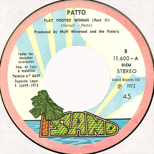 | Spanish single for "Flat Footed Woman" (Parts 1 & 2). Cat. # 11600. Side A fades 4:15 into the song at the pause for Ollie's piano flourish. Side B starts cold when the rhythm section kicks back in. |