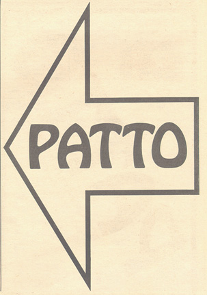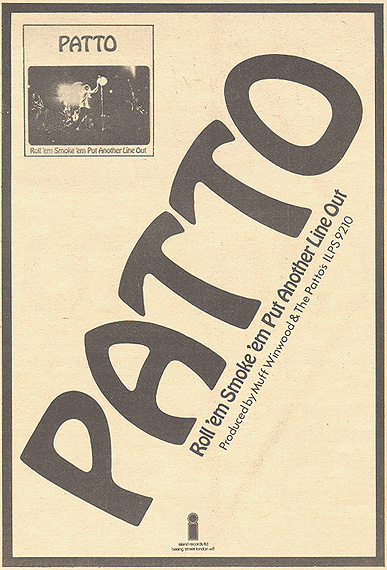 | Advertisement from the October 28, 1972 issue of New Musical Express. The arrow was on the opposite page (look carefully at the arrow, and you'll see a reversed Patto logo ink transfer from the advert). |