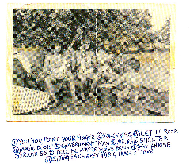 | Inside of the CD booklet featuring various photos from John's archives, the 1972 "Roll Em Smoke Em..." press photo, and a 1971 gig contract from the Van Dyke (courtesy of yours truly). | |