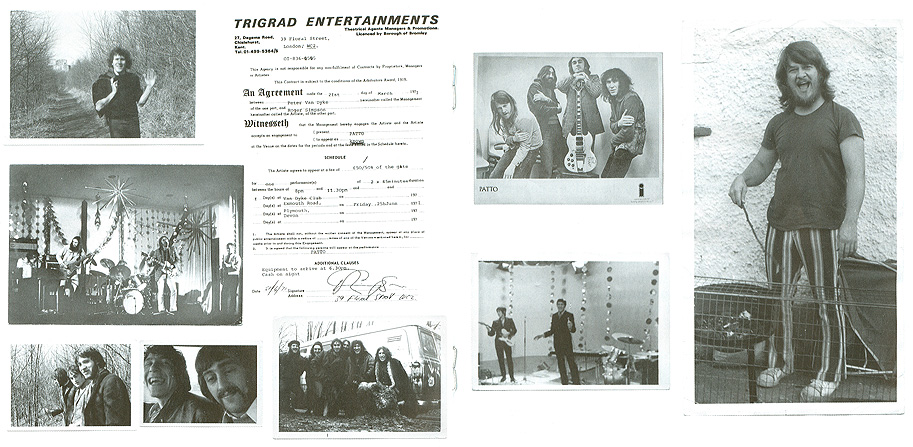 FROM THE ARCHIVES OF ADMIRAL HALSEY! Back in January of 2000, John Halsey released the first official live Patto CD. "Warts and All" features performances from a 1971 gig at the Black Swan, Sheffield, recorded while the band was busy recording their "Hold Your Fire" album. It was an unusual gig. Mike's throat was a bit sore, so Ollie sang more than usual and they pulled out some numbers they hadn't done for a while. The show was a little rough around the edges, and that is why the CD title and layout of the booklet are as they are. It captures the only time Ollie ever sang "San Antone" live. "Let It Rock" includes an incredible guitar solo from Ollie that John says alone should justify the price of the CD! His solo in "San Antone" is amazing as well. The complete track listing is below. John included entertaining liner notes and a bunch of personal photos. I'm happy to say he included some of the silly, candid photos in his archives. He even included a picture of a 1971 gig contract from the Van Dyke, courtesy of yours truly. As the cover indicates, this is a recording from John's personal archives. It is not a studio quality recording and is not for those who demand high-fidelity recordings. As John says in the liner notes, "This recording was made by myself with a little cassette player with a built-in mike that was put on the side of the stage, and it is far from 'Studio' quality. Thankfully the vibe of the evening comes across and Ollie's incredible guitar playing was at its height." As you may expect with a thirty-year-old amateur recording on cassette tape, there are times when the sound is somewhat distorted and there's the odd dropout. However, it still sounds better than the other (non-BBC) live tapes that have surfaced thus far. "Warts and All" gives us devoted Patto fans nearly an hour of live Patto recordings to enjoy that would otherwise have sat in the bottom of a box forever. |